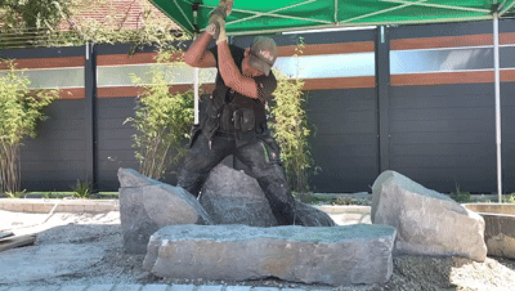 Alter Garten mit Pool verwandelt sich mit viel Einsatz in ein Schmuckstück mit künstlerischem Anspruch.